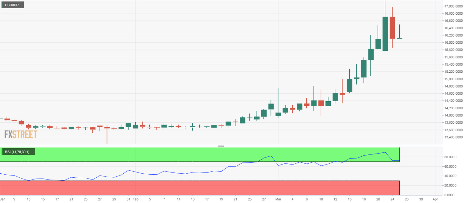 - USD/IDR's daily chart indicators are signaling buyer exhaustion.