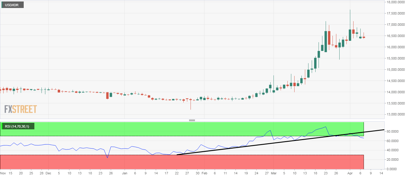 - USD/IDR's daily chart is reporting a bearish divergence of a key indicator.