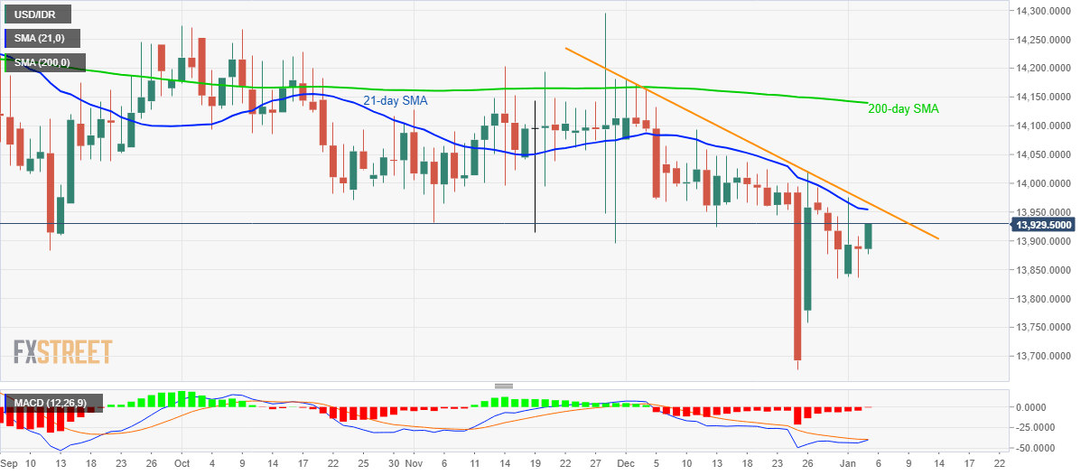 USD/IDR Technical Analysis: Buyers may aim for 21-day SMA, monthly resistance trendline