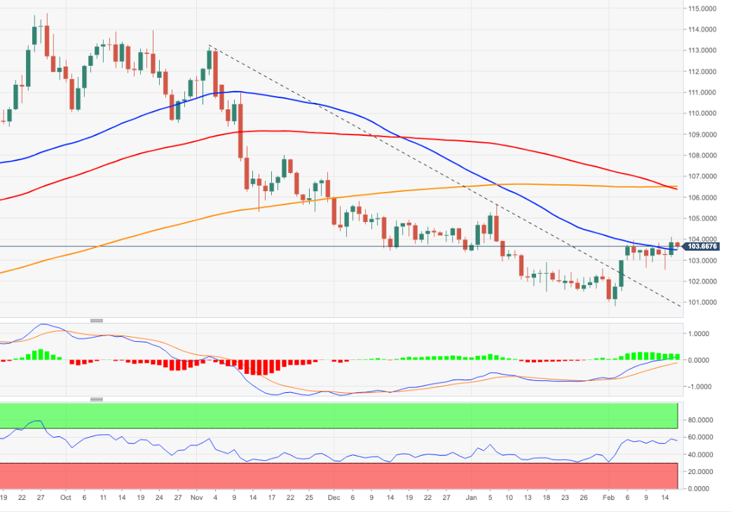 The ongoing price action leaves the door open to the continuation of the consolidative note for the time being. Occasional bouts of strength, however, should face the February high at 104.11 (February 15) as the immediate hurdle, while the trespass of this level could open the door to a potential challenge of the 2023 top at 105.63 (January 6) in the relatively near term.