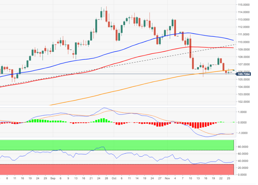 - The index resumes the downtrend and revisits the 105.30 region.