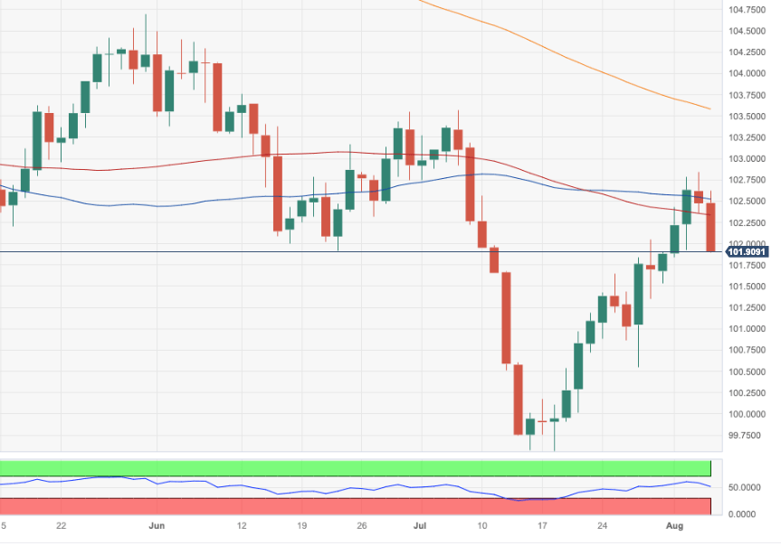 The index came under renewed downside pressure soon after hitting multi-week highs near 102.80 on Thursday. So far, the July tops around 103.50 (July 3) emerge as a tough barrier for bulls. This area is also underpinned by the key 200-day SMA.