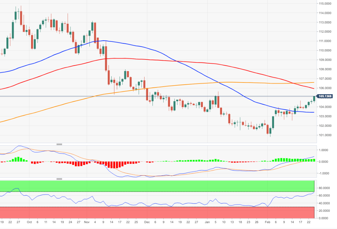 The ongoing price action favours the continuation of the uptrend for the time being. That said, the dollar could now challenge the 2023 top at 105.63 (January 6) in the near term ahead of the key 200-day SMA, today at 106.46.