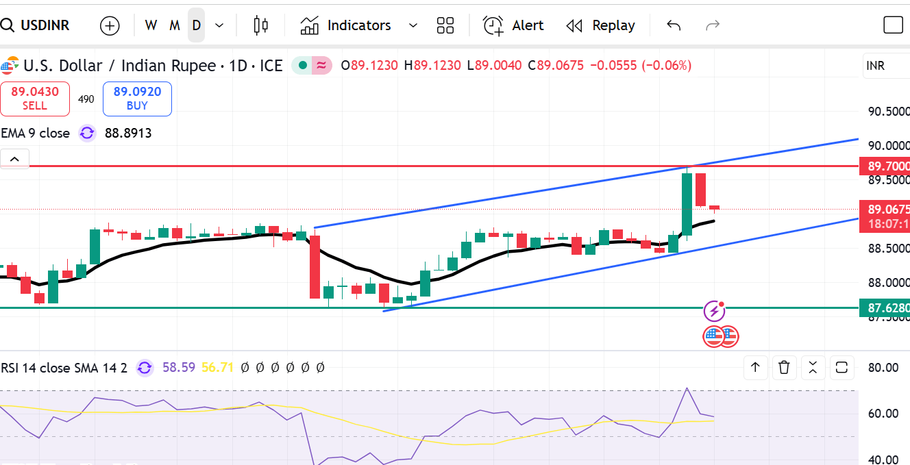 Technical Analysis: USD/INR tests the psychological support at 89.00