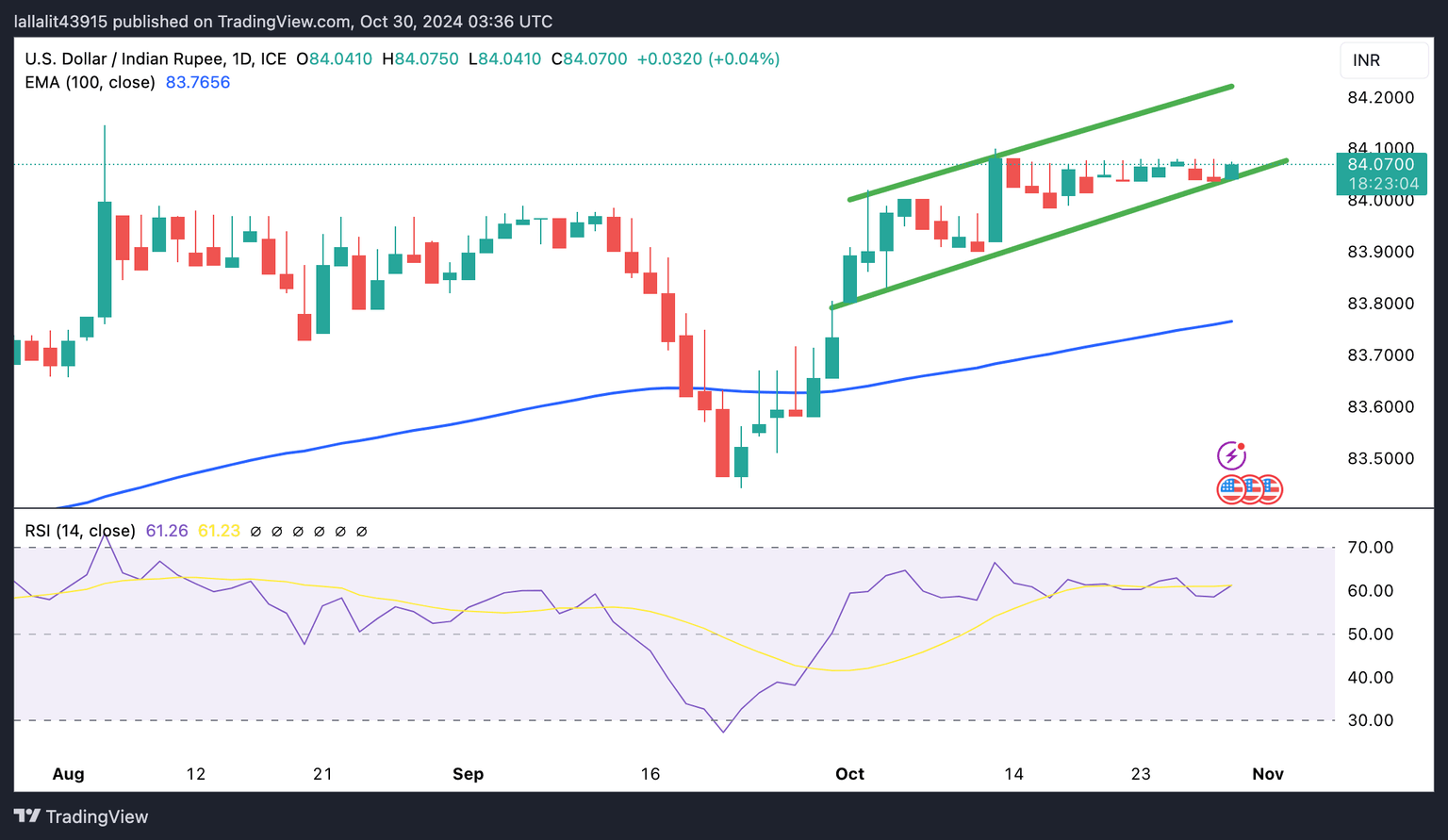 On the other hand, sustained trading below the lower limit of the trend channel near 84.05 could expose USD/INR to a possible move down to 83.76, the 100-day EMA.