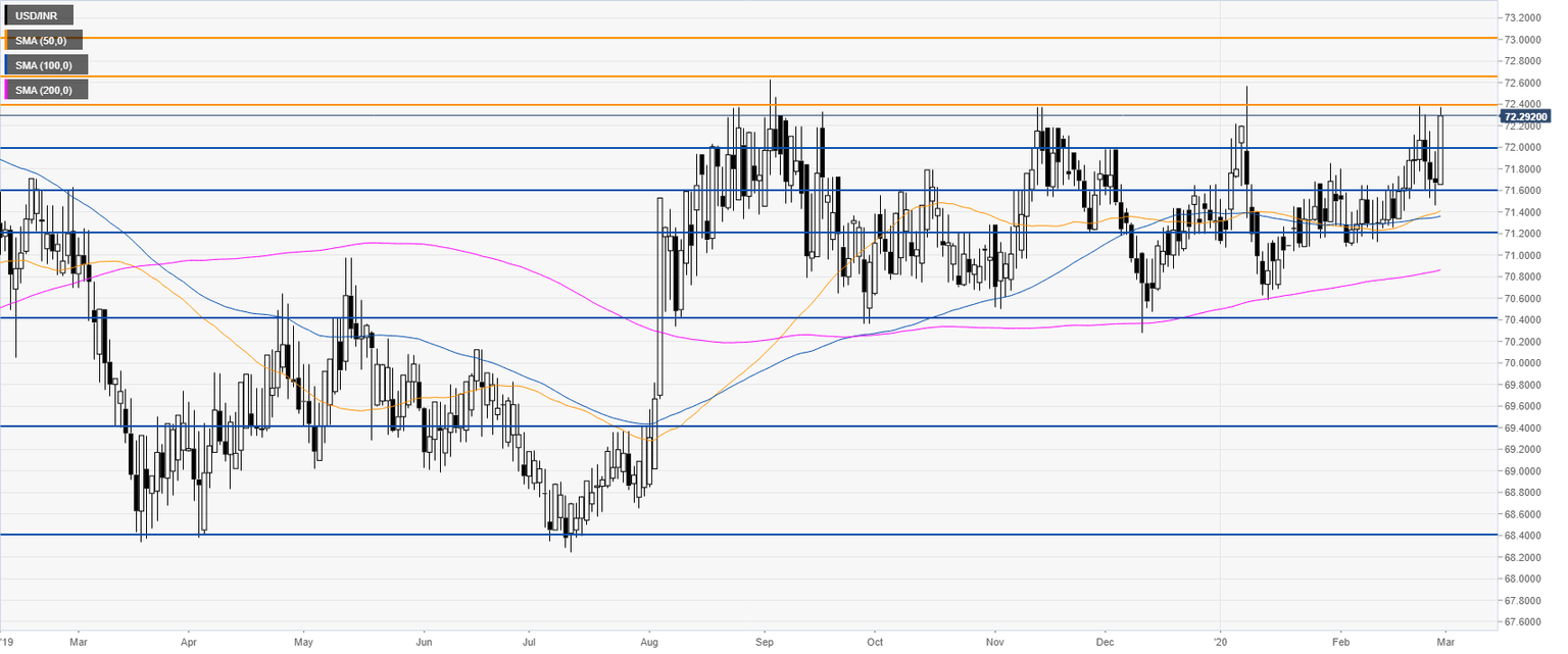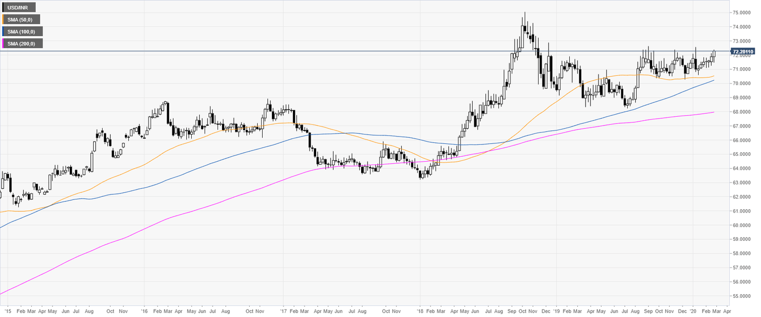 - USD/INR bulls are looking at the 2020 highs and the 73.00 figure.