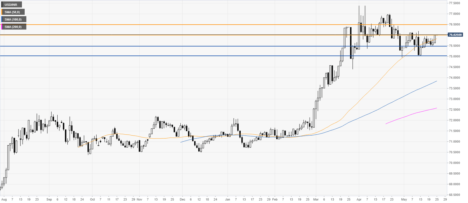 USD/INR New York Price Forecast: Greenback knocking at the 76.00 resistance vs. Indian rupee