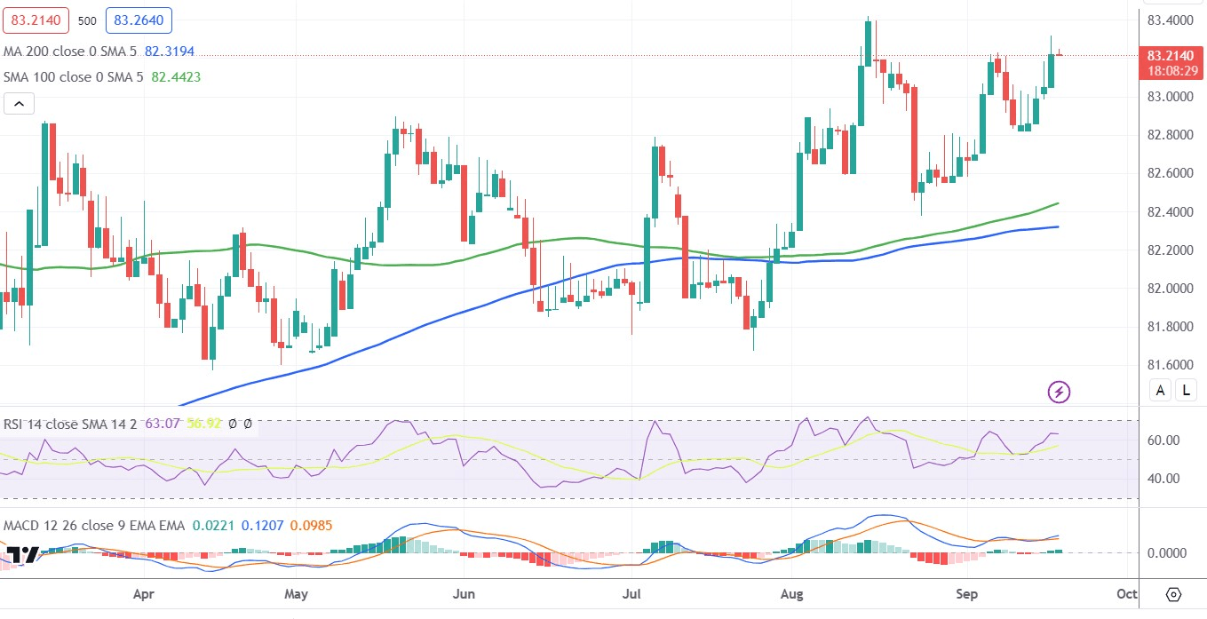 Hence, a subsequent strength back towards challenging the all-time high, around the 83.45 region touched in August, looks like a distinct possibility. Some follow-through buying will be seen as a fresh trigger for bulls and allow the USD/INR pair to conquer the 84.00 round-figure mark. Bulls, however, might refrain from placing aggressive bets and prefer to wait on the sidelines ahead of the crucial FOMC monetary policy decision, scheduled to be announced on Wednesday.