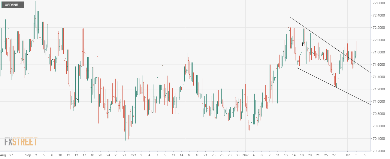 - USD/INR's 4-hour chart shows a bull flag breakout, a continuation pattern.