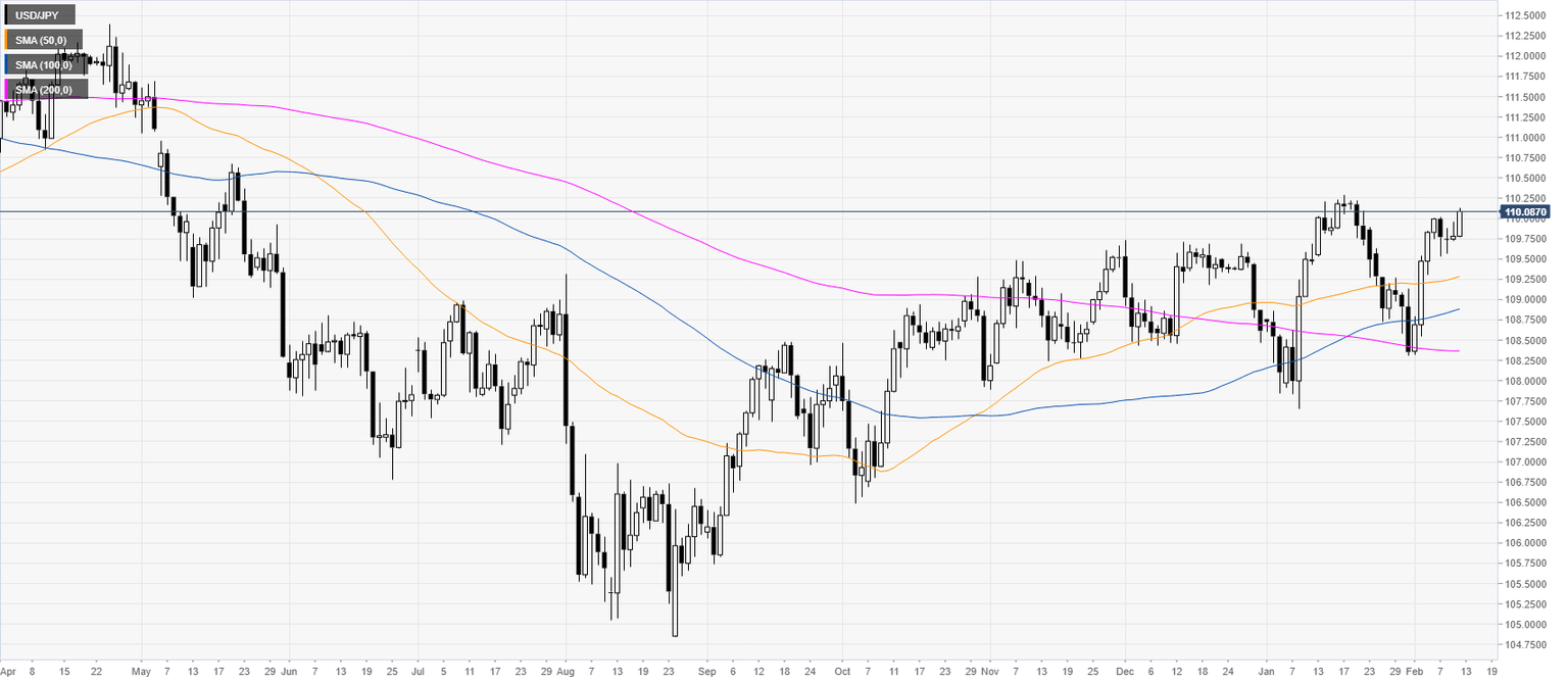 USD/JPY broke above the 110.00 figure while trading above its main daily simple moving averages (SMAs). Bulls are eyeing at the 2020 highs.