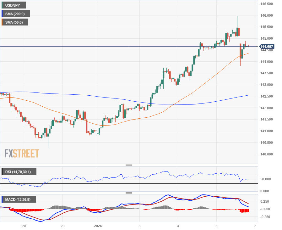 Friday made a mess of the USD/JPY intraday charts after the post-NFP plunge, tapping 146.00 and dipping below 144.00 before settling the day close to where it started near 144.50.