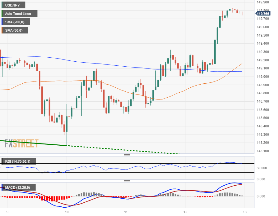 The USD/JPY is hanging close to Thursday's highs of 149.83, just inches away from the 150.00 major handle. The pair is well-bid off the day's early lows near 148.95, and USD/JPY gained 0.42% on Thursday to close out trading just shy of 149.80.