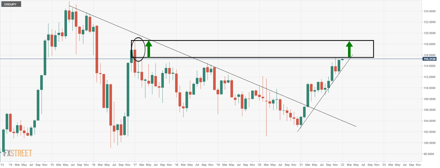USD/JPY is attempting to break into a key area on the monthly chart. If it breaches the 116 figure, then there are real prospects of mitigation between here and 118.60 for the first quarter of the year.