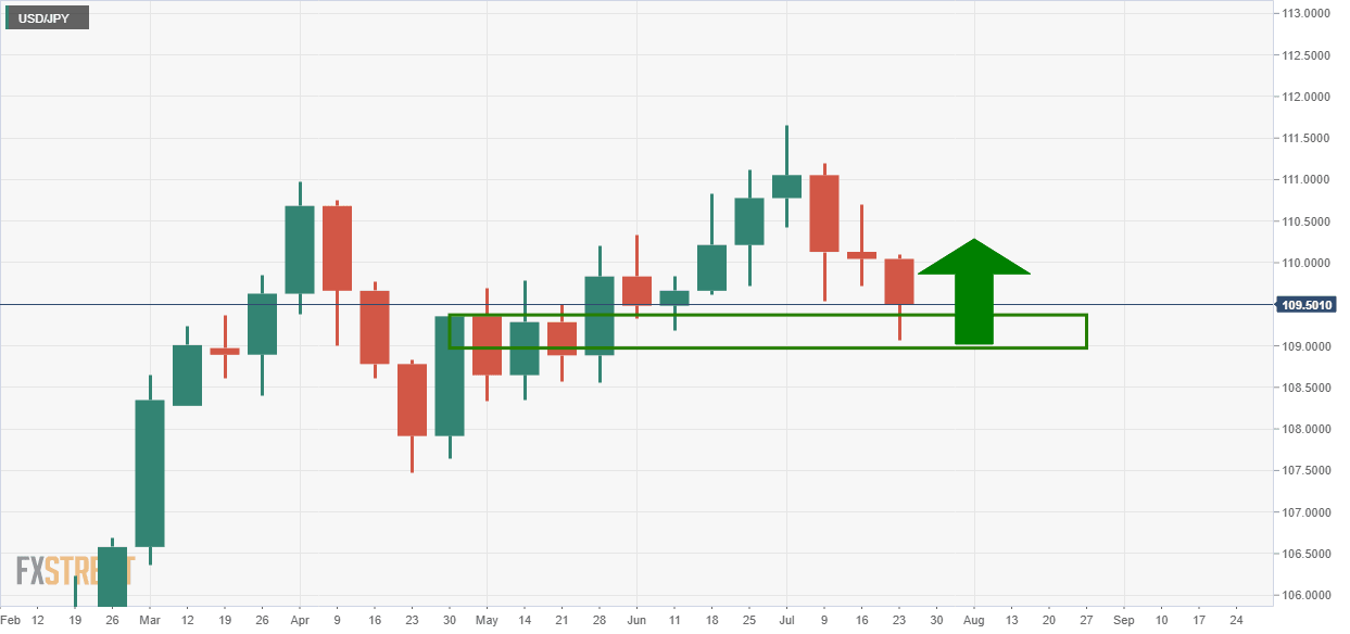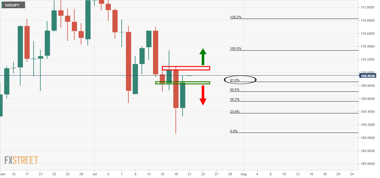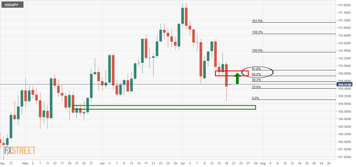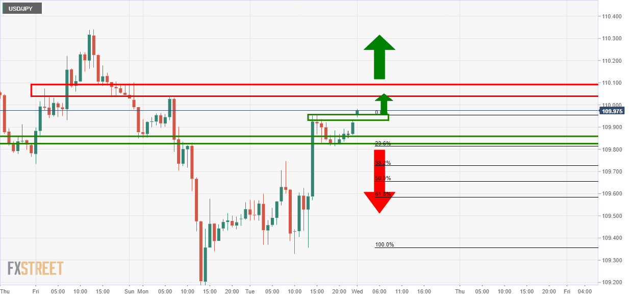 USD/JPY has rallied from a low of 109.78 to a high of 109.97 completing a 61.8% Fibonacci retracement from the lows and setting the pair up in good stead for firmer grounds.
