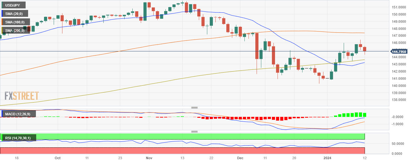 In Friday's trading session, USD/JPY encountered a setback, currently trading around 144.70 with losses of 0.40%. This downward movement is driven by the soft Producer Price Index (PPI), but escalating tensions in the Red Sea region may drive demand back to the US Dollar.