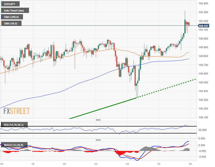 The USD/JPY ripped into a twelve-month high above 150.30 late Wednesday as markets continue to test the Bank of Japan's (BoJ) resolve at defending the 150.00 handle, a level that has seen the BoJ draw a line in the sand on multiple occasions in the past.