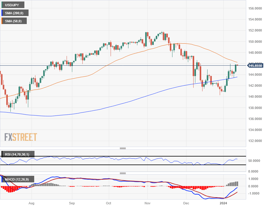 The recent decline in the Yen on Wednesday has propelled the USD/JPY pair, positioning it for a potential retest of last week's peak at the 146.00 level. Short-term momentum suggests a bullish trend, with the 200-hour Simple Moving Average (SMA) ascending towards 143.50, aligning with Wednesday's low point.