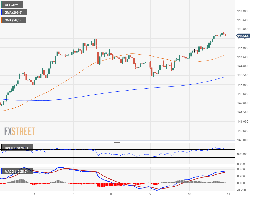The USD/JPY witnessed a notable upswing in Wednesday’s trading, reaching 145.80 and approaching the key resistance level of 146.00 as markets gear up for Thursday’s Asia market session. This upward movement is attributed to a significant depreciation of the Japanese Yen (JPY) across the market, sparked by disappointing Japanese wage figures released earlier in the day. Consequently, the Yen is undergoing a decline across various market segments mid-week.