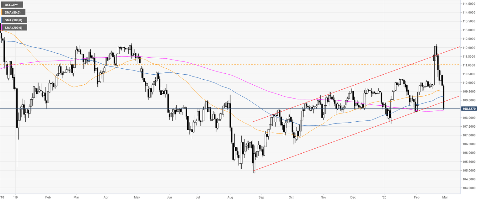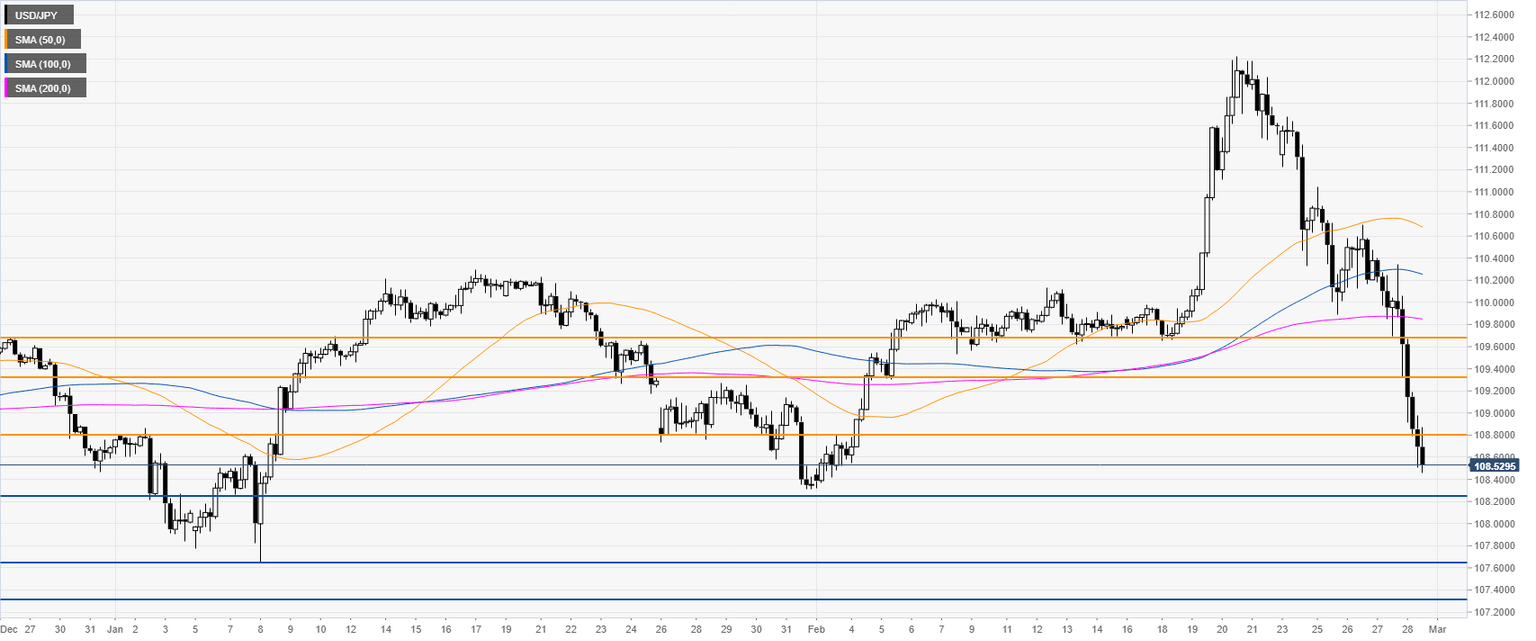 - USD/JPY is dropping sharply below the 110.00 figure as the market is nearing the 200-day SMA.