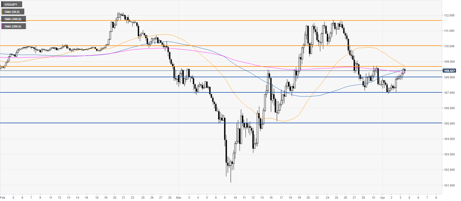 - USD/JPY is stabilizing in the 108.00 handle after US jobs report.