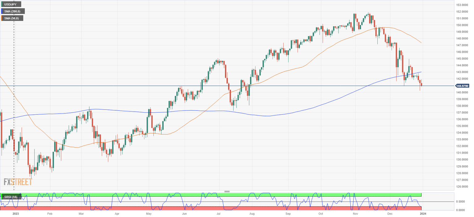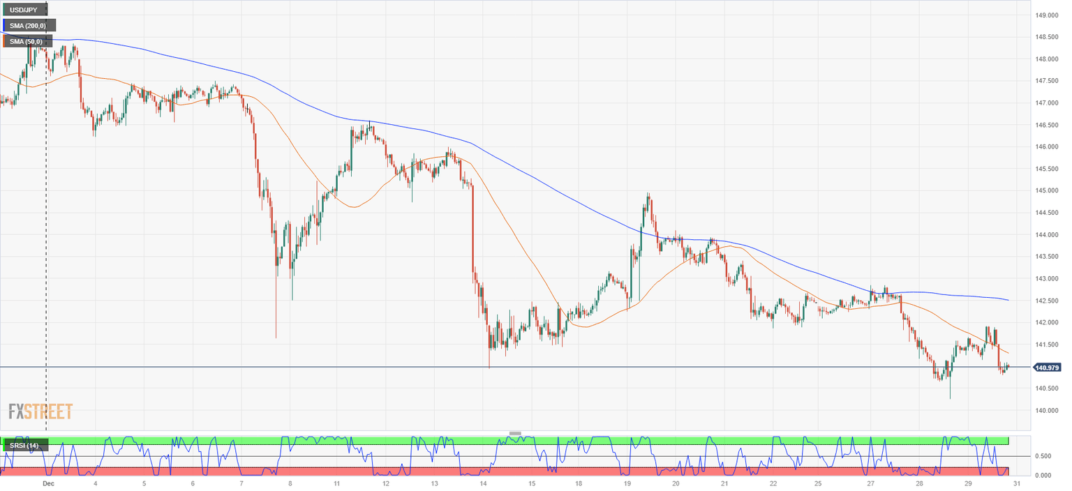- USD/JPY stuck to 141.00 as markets head towards 2024.
