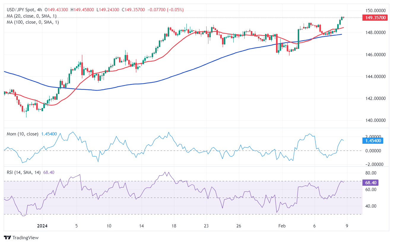 - USD/JPY on its way to test the 150.00 level, according to the daily chart.