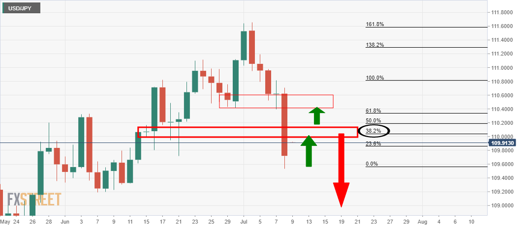 - USD/JPY bulls look for a restest of 110.00/50.