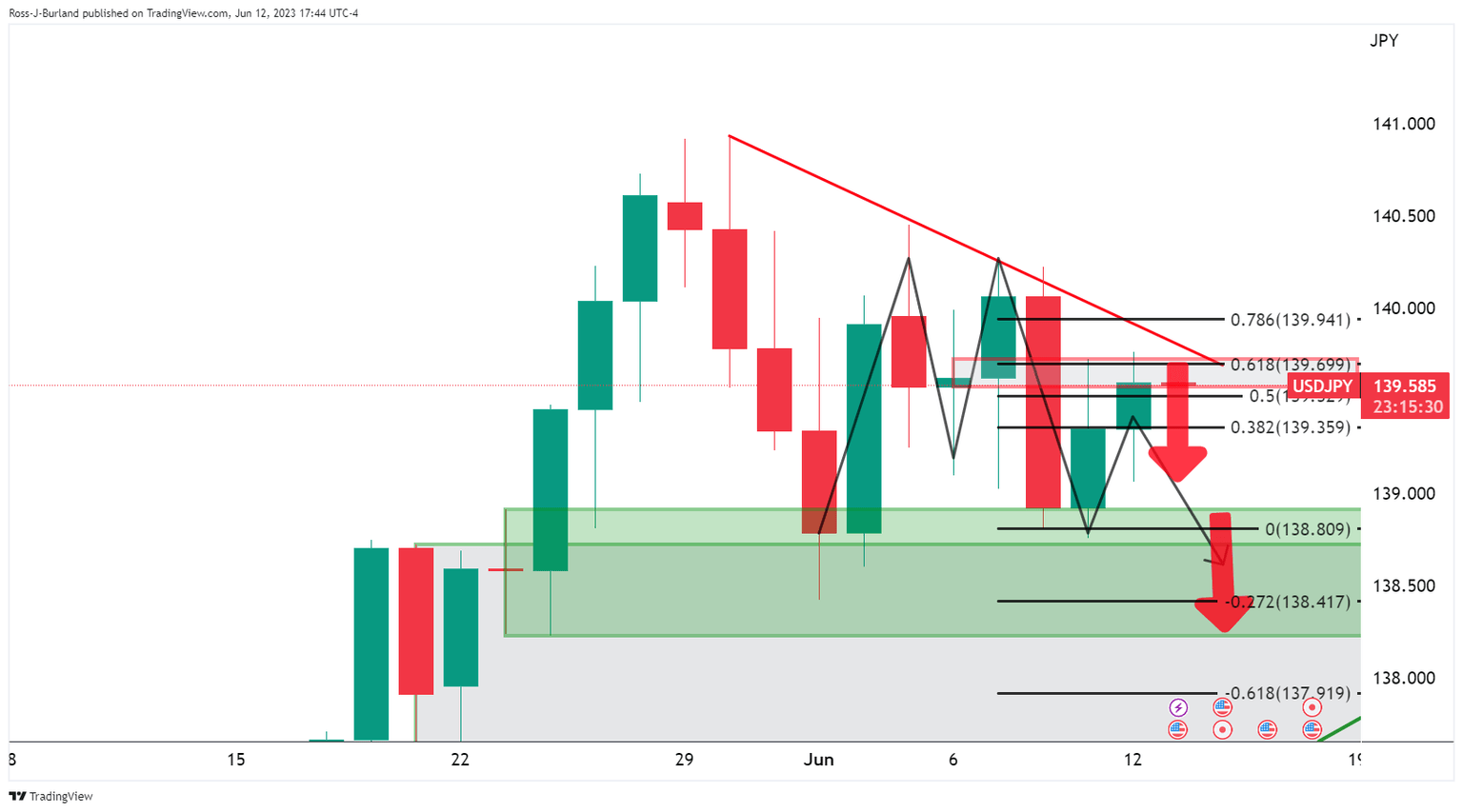 USD/JPY rallied on Monday but within a bearish structure on the charts. Nevertheless, the pair now consolidates ahead of key events on the US calendar this week, starting Tuesday. The May inflation rate on Tuesday will be a key focus and could shift the needle ahead of the Federal Reserve interest rate decision.