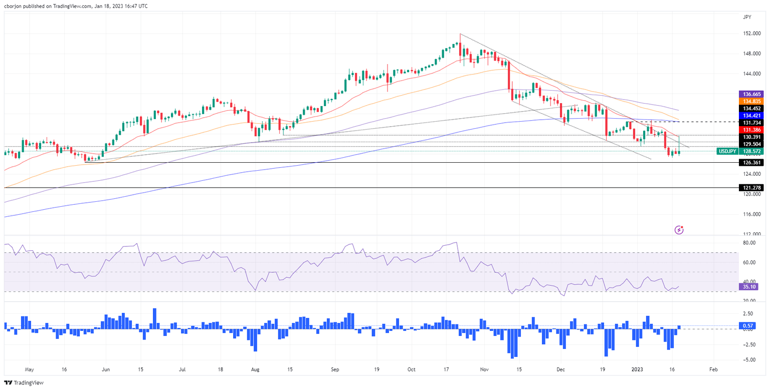 The USD/JPY clings to gains after hitting a daily high of 131.57 following the release of the Bank of Japan’s (BoJ) monetary policy decision, which sparked a 400 pip rally. However, throughout the North American session, the Japanese Yen (JPY) stages a comeback against its counterpart, the US Dollar (USD), and so far is down 0.24%. At the time of writing, the USD/JPY is trading at 128.56.