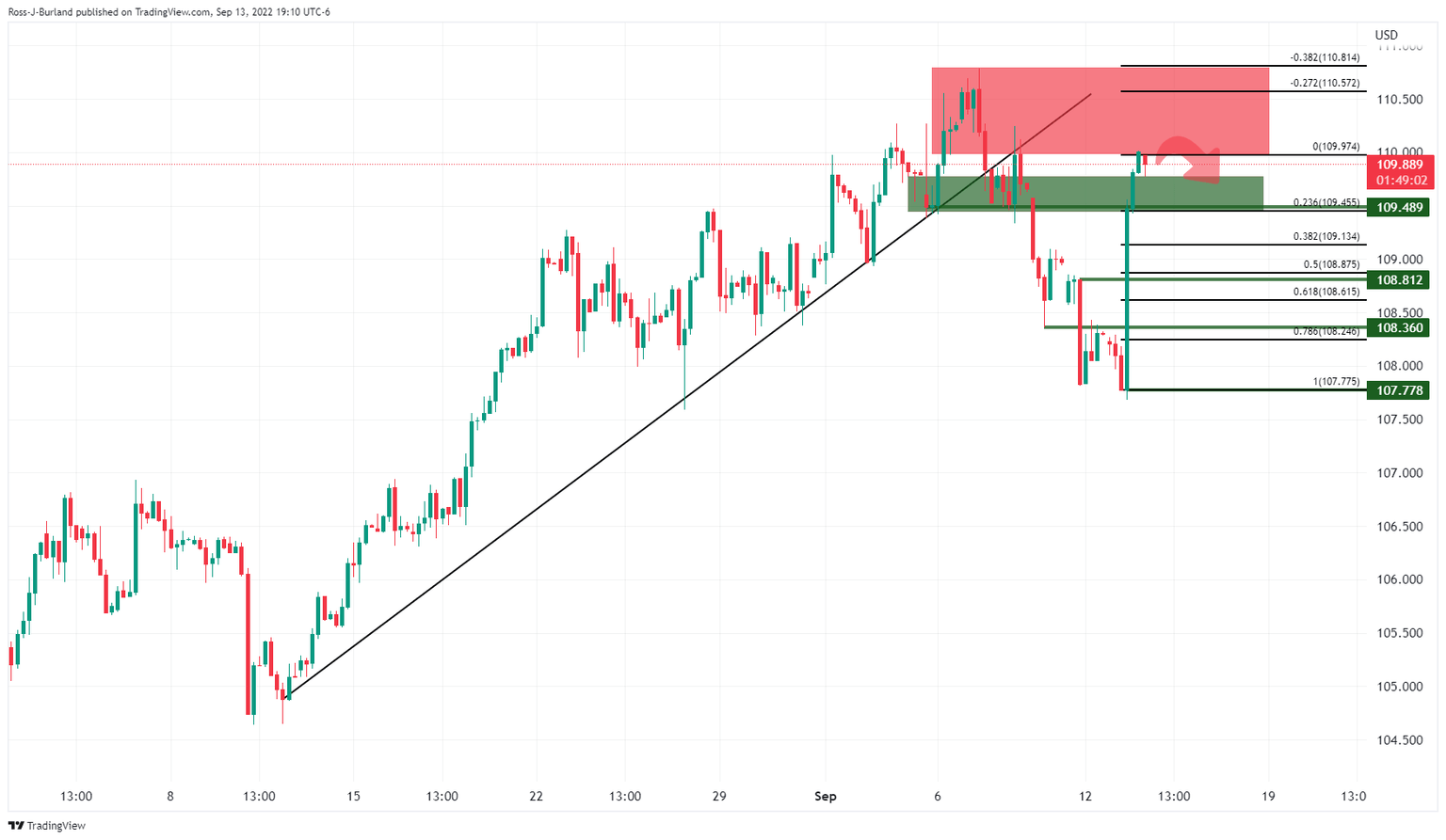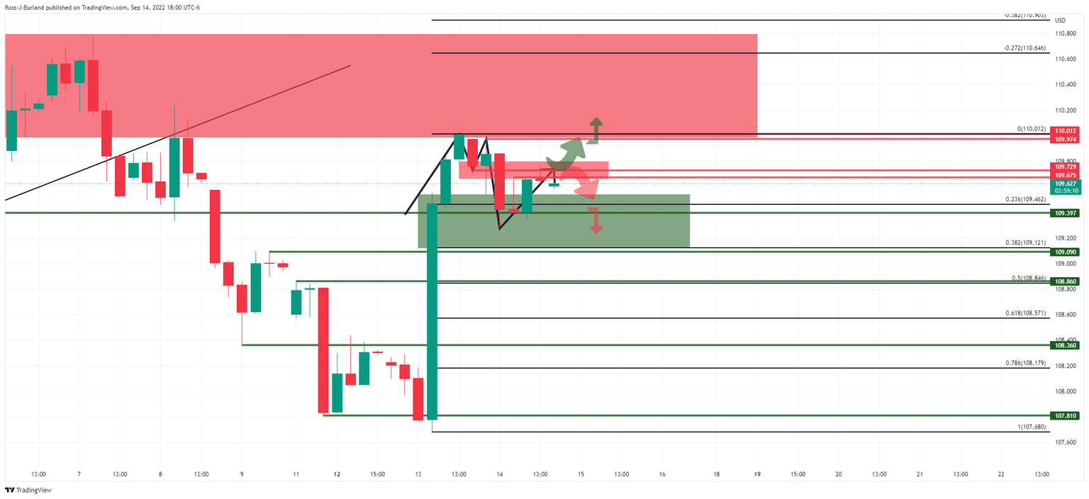 The chart above illustrated the market structure and key support levels should the US dollar take a turn for the worst in the coming days which could prompt a buying camping in the yen.