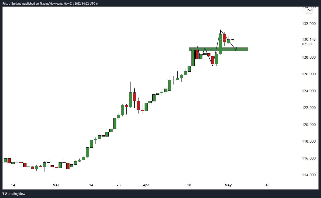 USD/JPY ended the day flat on Wall Street around as markets moved into consolidation ahead of the Federal Reserve. At the time of writing, USD/JPY is trading at 130.16 and has traded between 129.69 and 130.29. The pair is correcting a bullish impulse in the daily charts that was made when the US dollar rallied to 20-year highs last week.