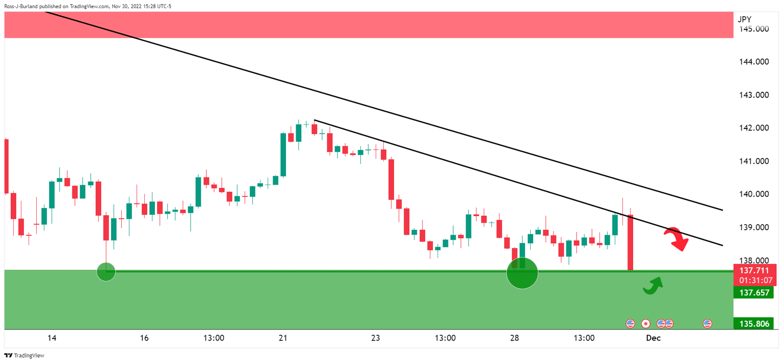 USD/JPY Price analysis: Bears eye a break of key support structures