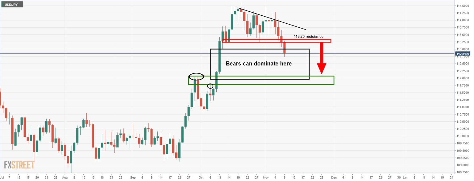 USD/JPY Price Analysis: Bears seek a run to 112.08 while bulls look to 113.20