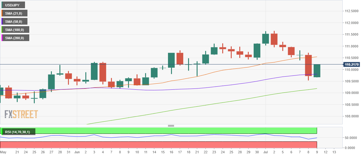 USD/JPY is reversing more than half of Thursday’s slide in the American session, having recaptured the 110.00 level amid an upbeat market mood.