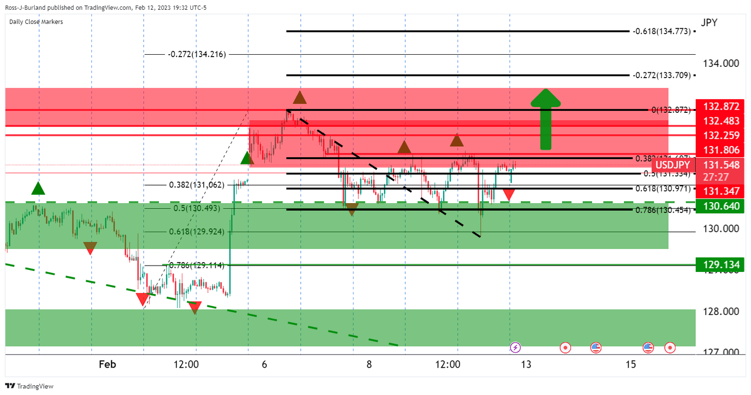 The price is on the backside of the prior bearish daily trend. The bulls are committing to the upside after a correction of the breakout from prior resistance which offers a foundation for the bulls to stay the course. For the days ahead, there could be prospects proven of a move to 133.70 cemented should the bulls crack 132.80 recent highs: