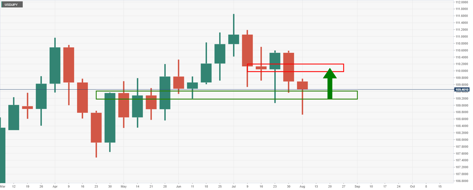 - 110.00 is eyed as a target for the bulls on a break of daily resistance.