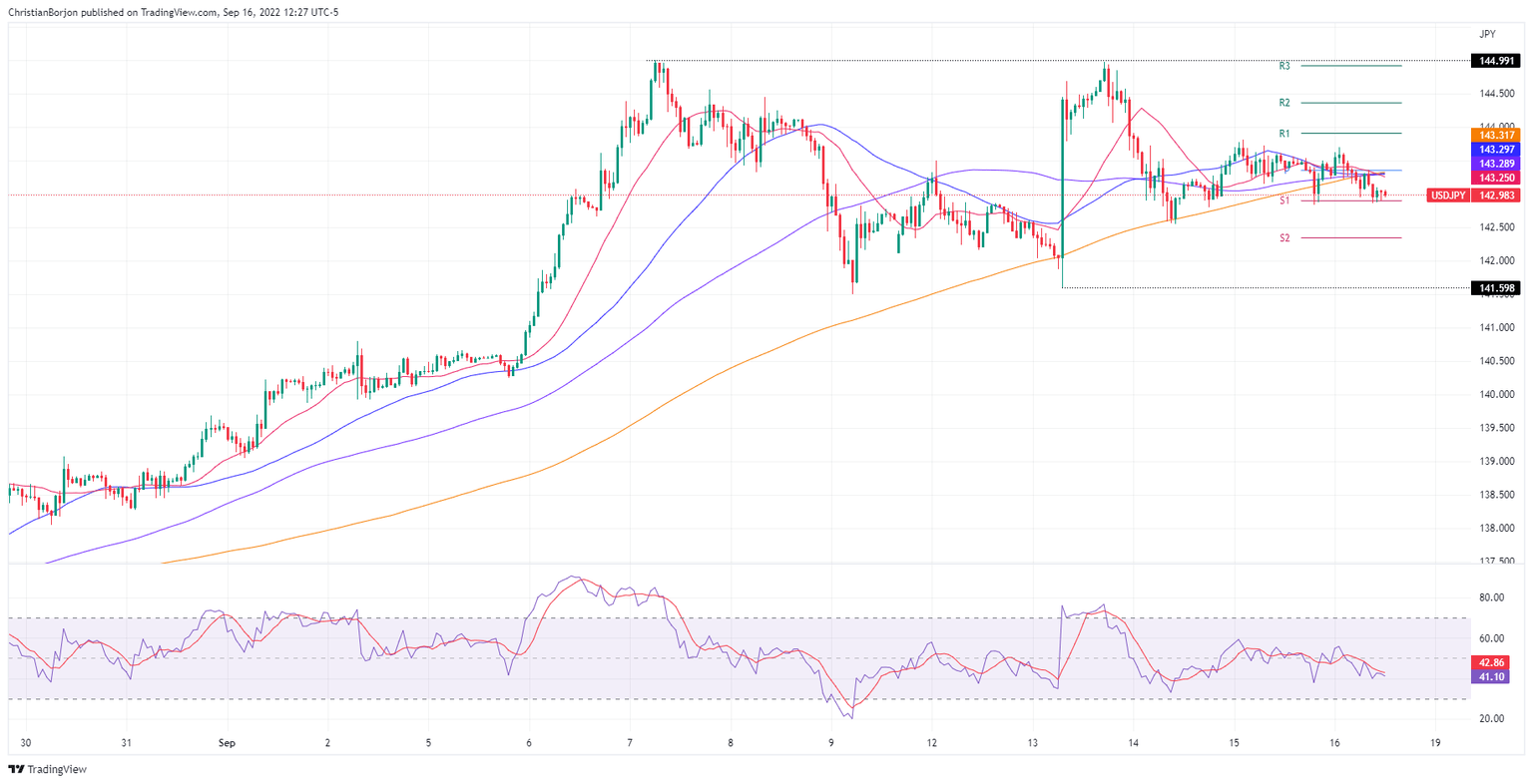 The USD/JPY slumps for the second day in the week after falling short of testing the YTD high at 144.99, but fears of Japanese intervention in the FX markets to bolster the yen kept USD buyers at bay, while the major dipped towards the 143.00 handle. The USD/JPY is trading at 142.98 after hitting a daily high at 143.69, down by 0.30%.