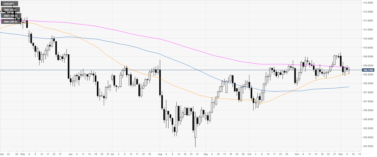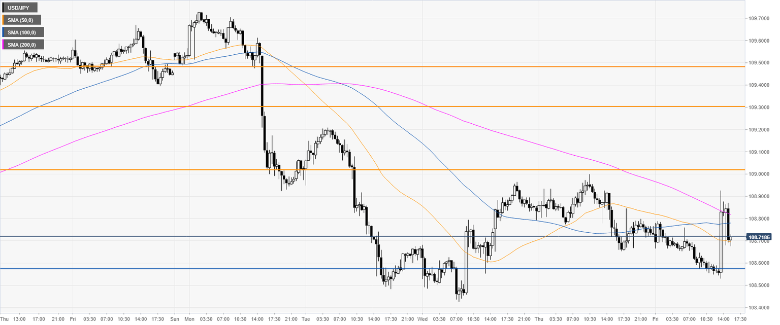 USD/JPY is trading below the 109.00 figure and the 50/200-day simple moving average (DMA) on the daily time frame as the market is in a tight range for the third consecutive day. Earlier, the Nonfarm Payrolls (NFP) smashed market expectations with 266k vs. 180k forecast.