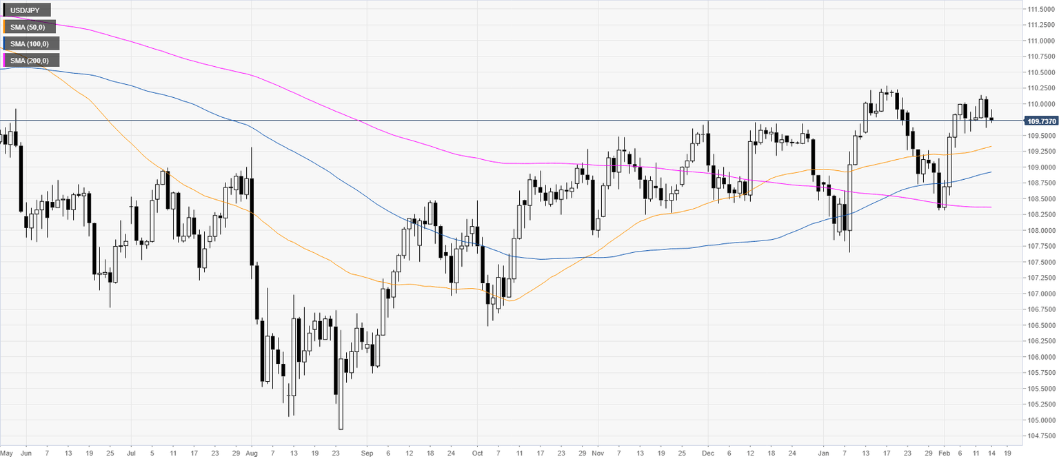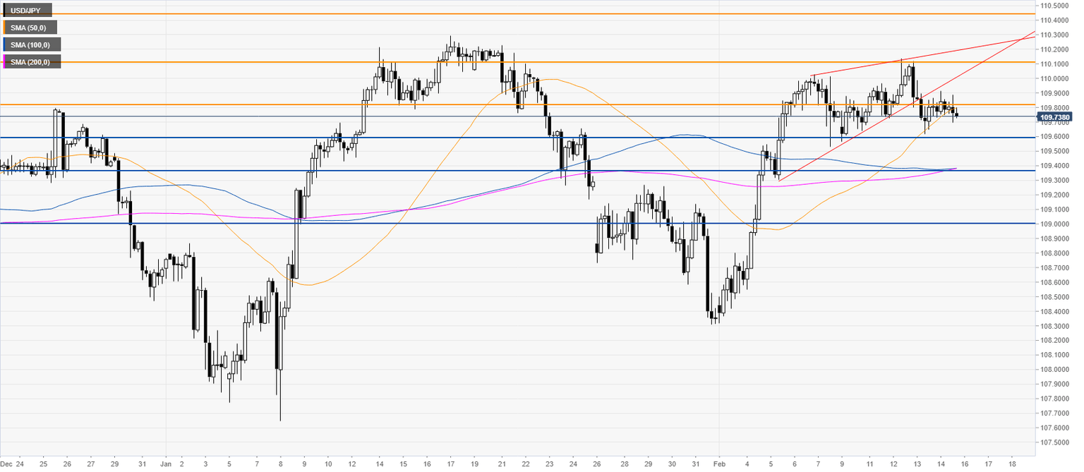 USD/JPY is easing from February highs below the 110.00 figure while trading above its main daily simple moving averages (SMAs).