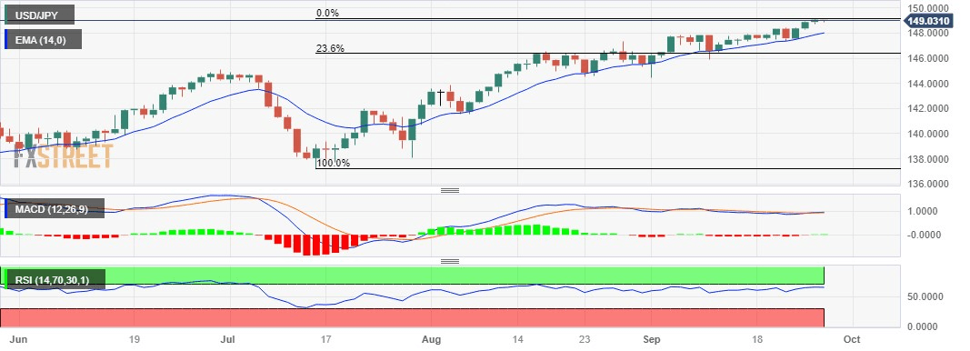 The upward momentum is potentially bullish as the 14-day Relative Strength Index (RSI) continues to stay above the 50 level. The psychological level at 150.00 could act as resistance.