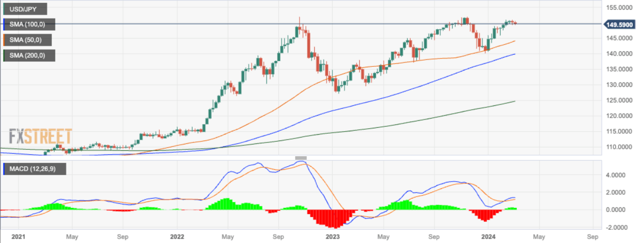 - The USD/JPY has climbed back to near previous peaks above 150, could this be a sign it is topping?