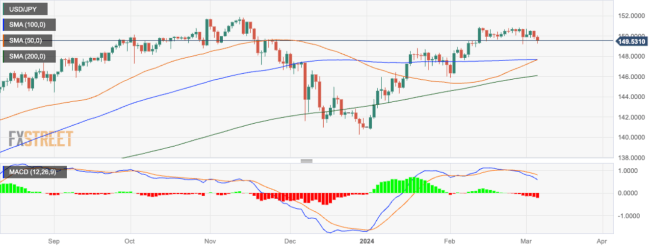 The indicator has reliably signaled the turning points in the medium-term sideways trend – both after the November 2023 highs and the January 2024 lows – so it is possible it may be correctly signaling the next move down. If so, the next downside target lower would be at around 148.00 where the 100 and 50-day Simple Moving Averages (SMA) are situated.