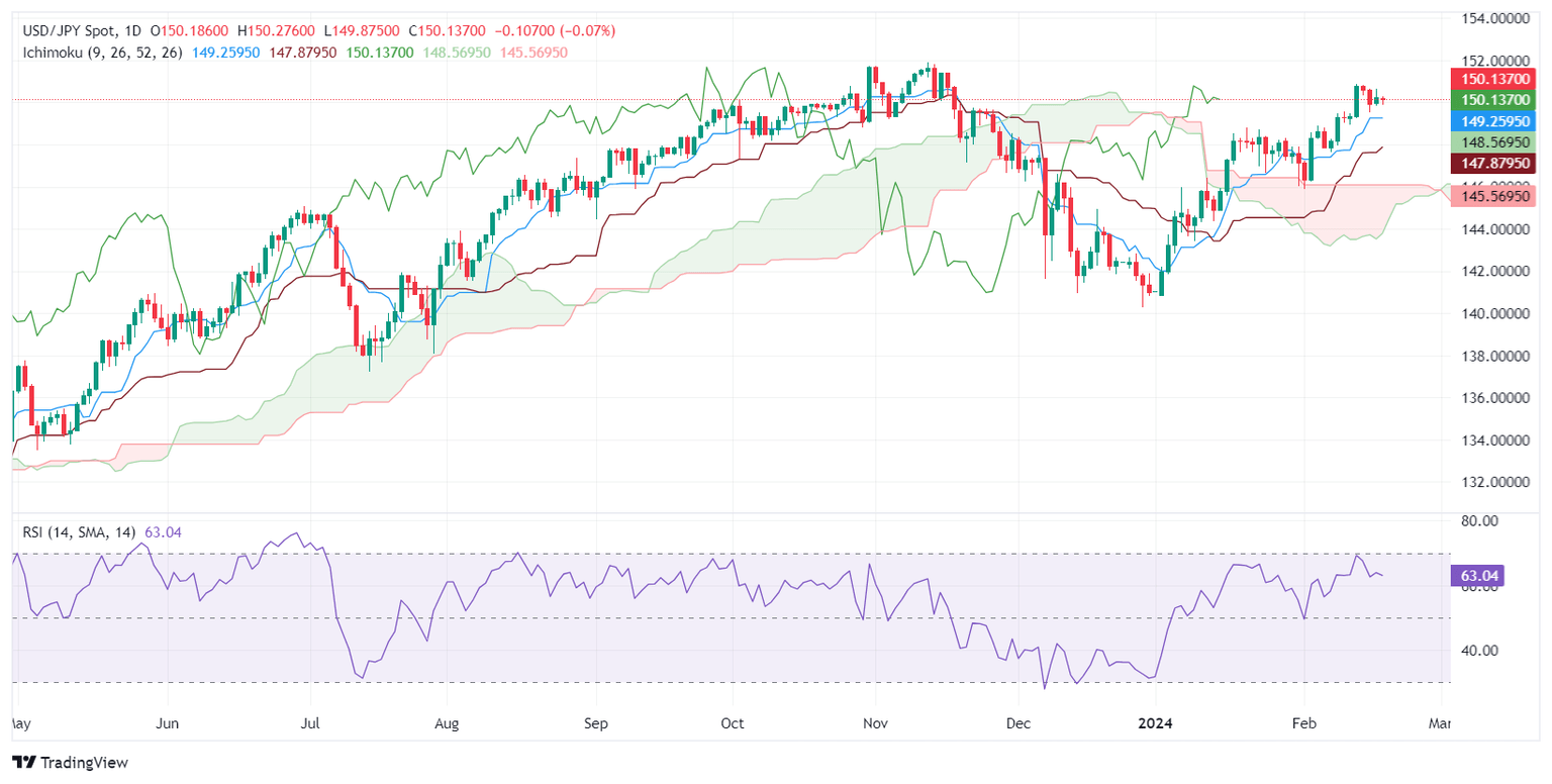 The USD/JPY traded sideways during a choppy trading session late on Monday, with Wall Street remaining closed in observance of President’s Day. At the time of writing, the pair exchanges hands at 150.13, flat.