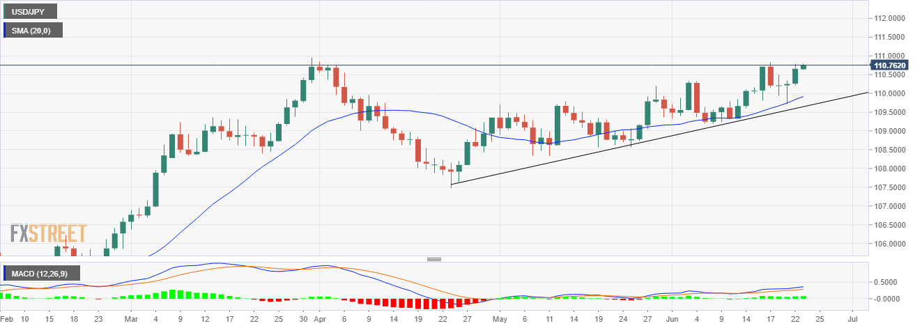 USD/JPY Price Analysis: Remains strong to meet daily confluence near 110.80