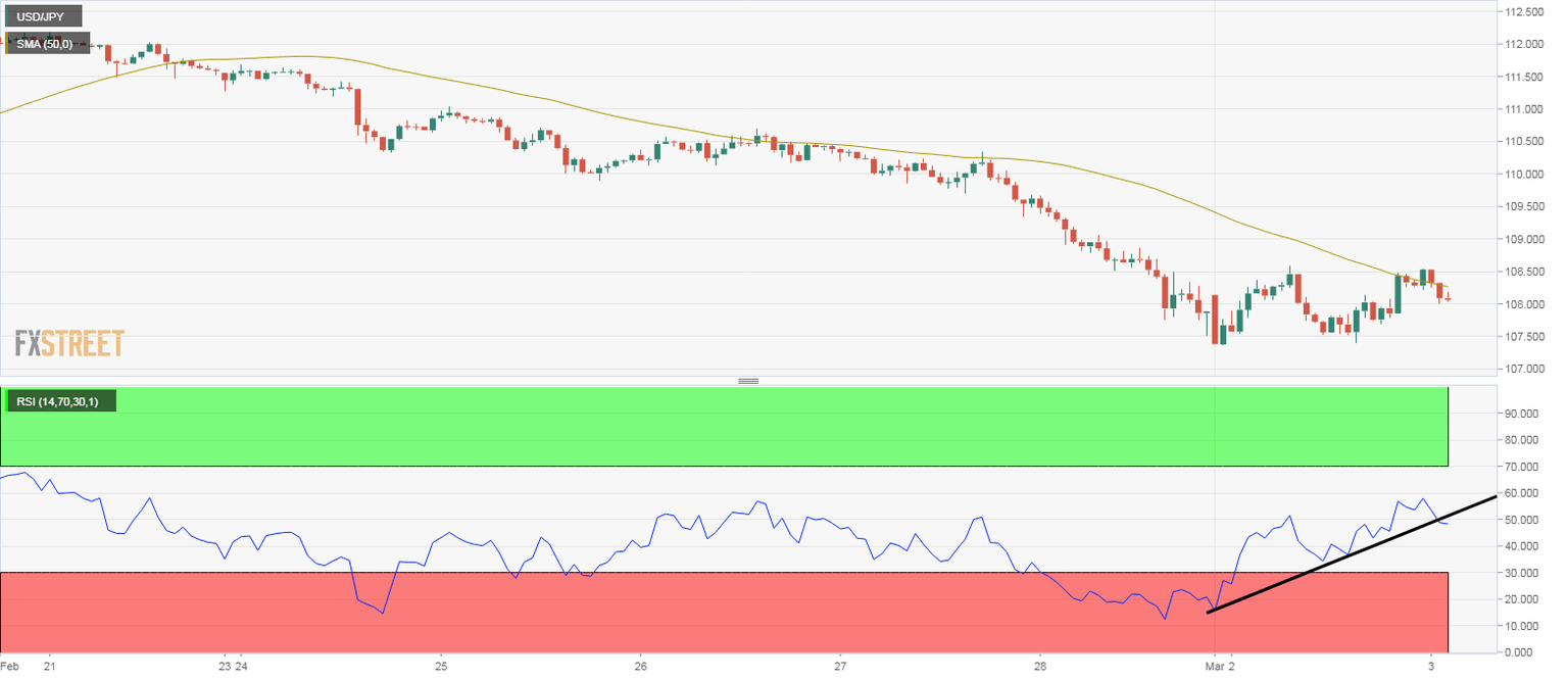 The USD/JPY pair is currently trading near 108.10, having hit session highs near 108.55 in early Asia.
