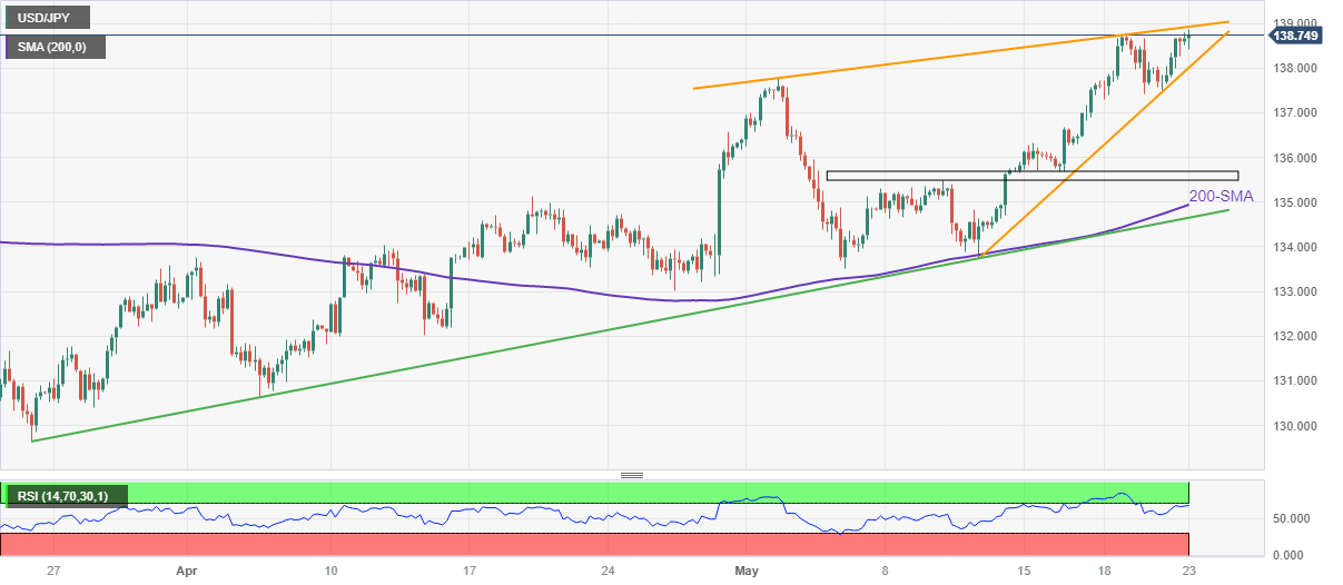 In doing so, the USD/JPY remains firmer inside a three-week-old ascending triangle, approaching the top line of the chart pattern of late. It’s worth noting, however, that the overbought RSI (14) could join the stated immediate hurdle near 139.00 to challenge the Yen pair buyers.
