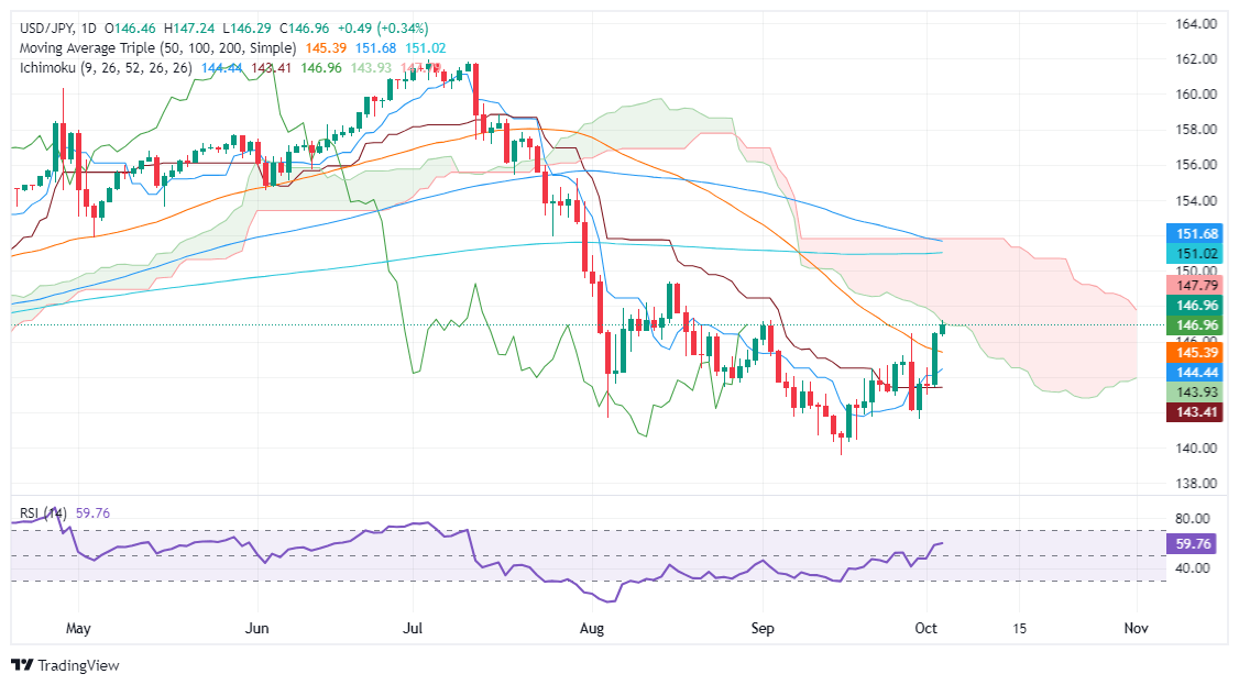 USD/JPY Price Forecast: Climbs above 147.00 as bulls target Kumo