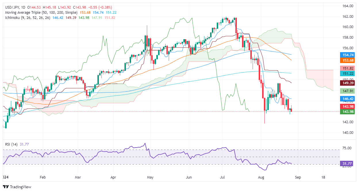 Conversely, if USD/JPY clears the 144.00 figure, the pair could aim upward and challenge higher prices. The next resistance would be the Tenkan-Sen at 146.42, followed by the 147.00 mark.
