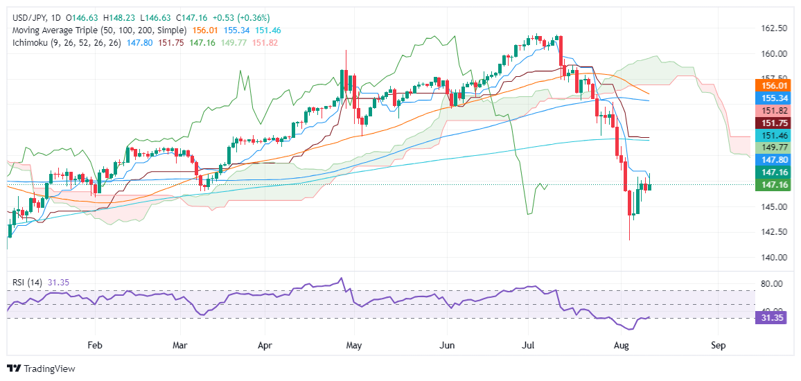 - If USD/JPY reclaims 147.79, resistance levels are at 148.00 and potentially 149.77, with the 200-DMA at 151.46 as a longer-term target.