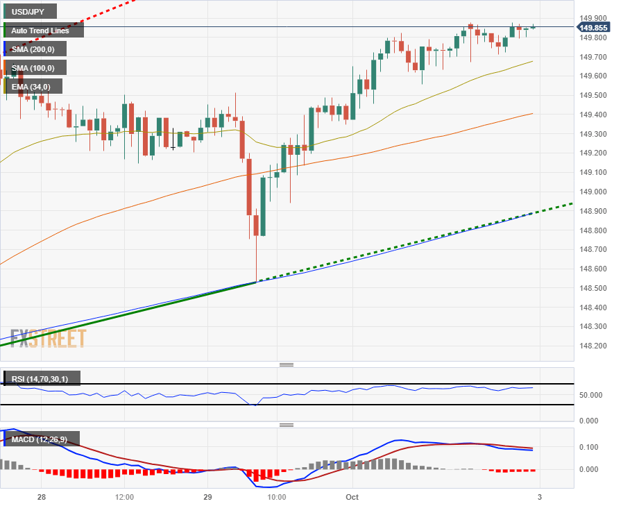 The USD/JPY is pinning into eleven-month highs just beneath the 150.00 major psychological handle, and Tuesday markets are rolling out of bed with the pair bidding near 149.85.